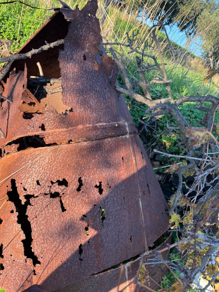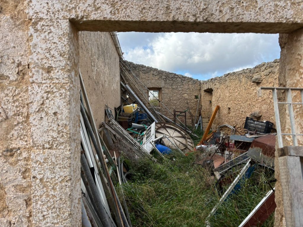 חדר אחד פתוח הפך גם הוא למחסן ובו מכלי פלסטיק, דלתות וגרוטאות חלודות.