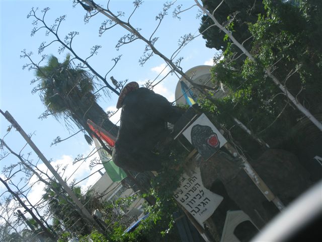 מה שנראה לעין – הבן אדם משקיע בנחלתו. במונדיאל הוא קישט אותו בדגלים. בעת שיקומו של גן העצמאות, הוא הקיף אותו בגזעים שנכרתו. קופים נתלים עליהם שם למעלה.