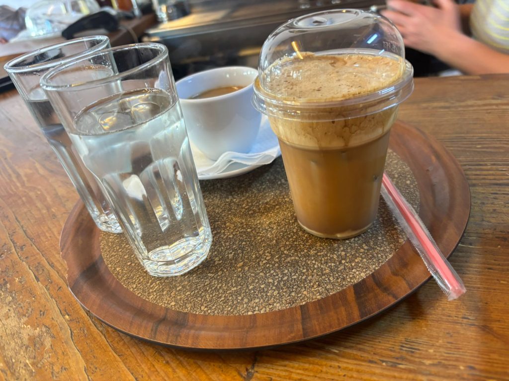 בקפה פותמוס, דימיטרה מכינה קפה יווני לצד קפה פראפה