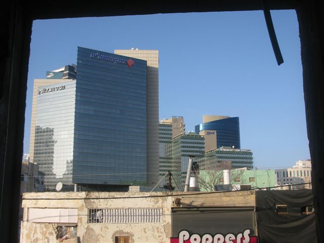 מחלון אחר ראינו מועדוני סקס לחברים בלבד (אז לא נכנסנו) וברקע מגדלי הי – טק במרחק יריקה.